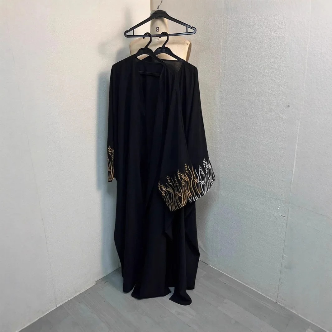 رداء طويل أنيق بتطريز عصري، يجمع بين التصميم العربي التقليدي والأناقة المعاصرة، مثالي للنساء المسلمات للارتداء اليومي والمناسبات.